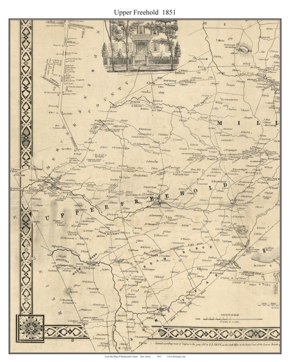Upper Freehold 1851 Old Town Map With Homeowner Names Allentown