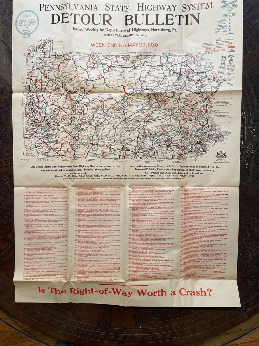 Map of Pennsylvania | State Highway System DETOUR BULLETIN 1930