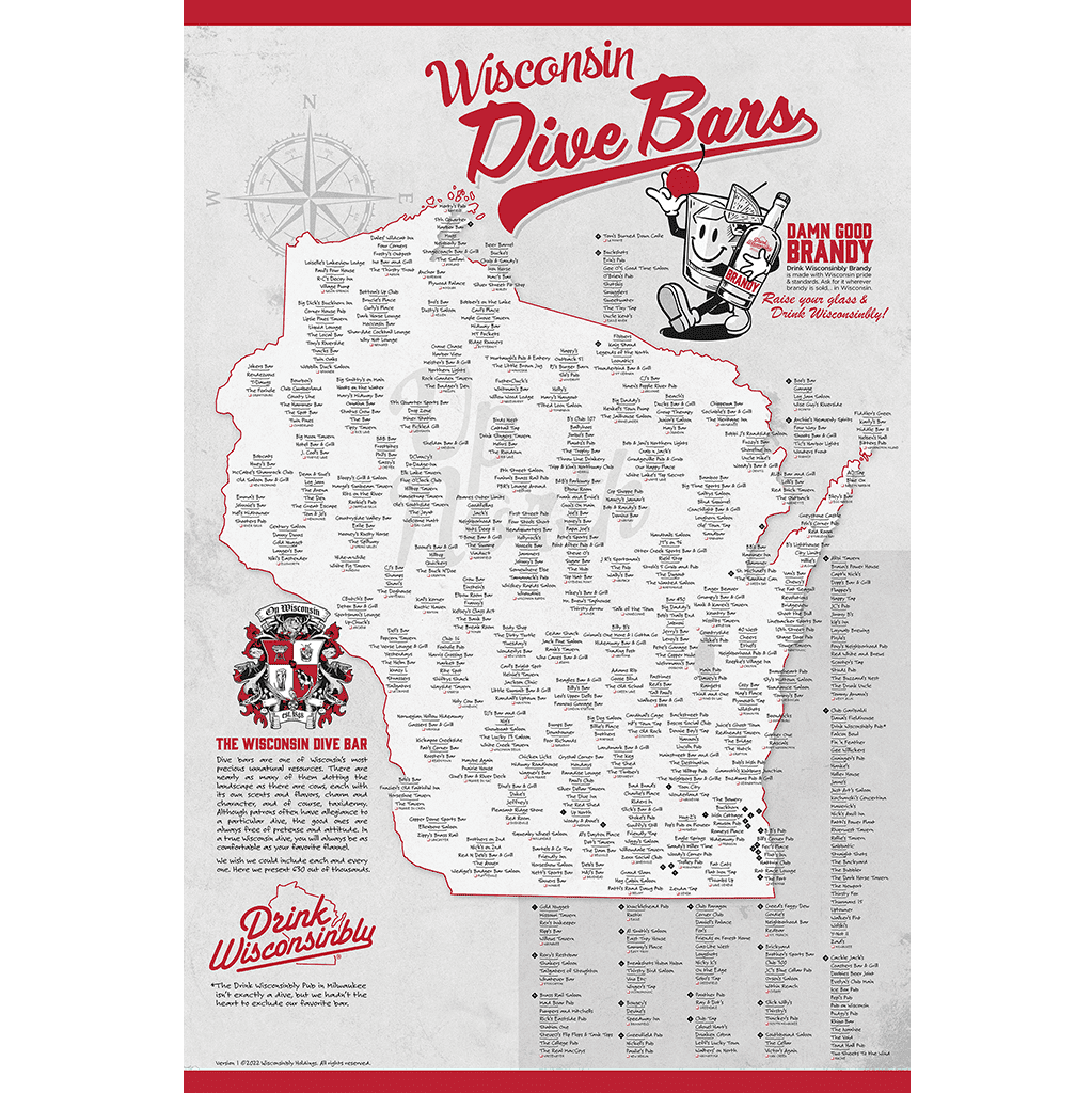 Wisconsin Dive Bar Map Drink Wisconsinbly Wisconsin Dive Bars Poster Drink Wisconsinbly: These interactive maps show every candidate listed on general election ballots in November this year. They also include additional information about some of the Democratic and Republican general . The western half of Wisconsin which is a soccer bar. “It’s like Groundhog Day for me. At one point, our ability to play soccer at Nomad took multiple deep dives, and I had to figure out .